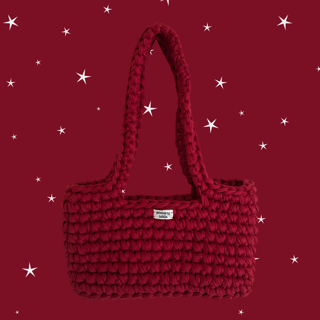 Dimensions approximately 30 x 40 x 7cm. Size, weight, colour and shape may vary slightly with each bag due to different recycled textiles. Handmade crochet handbag made from 100% recycled t-shirt yarn.